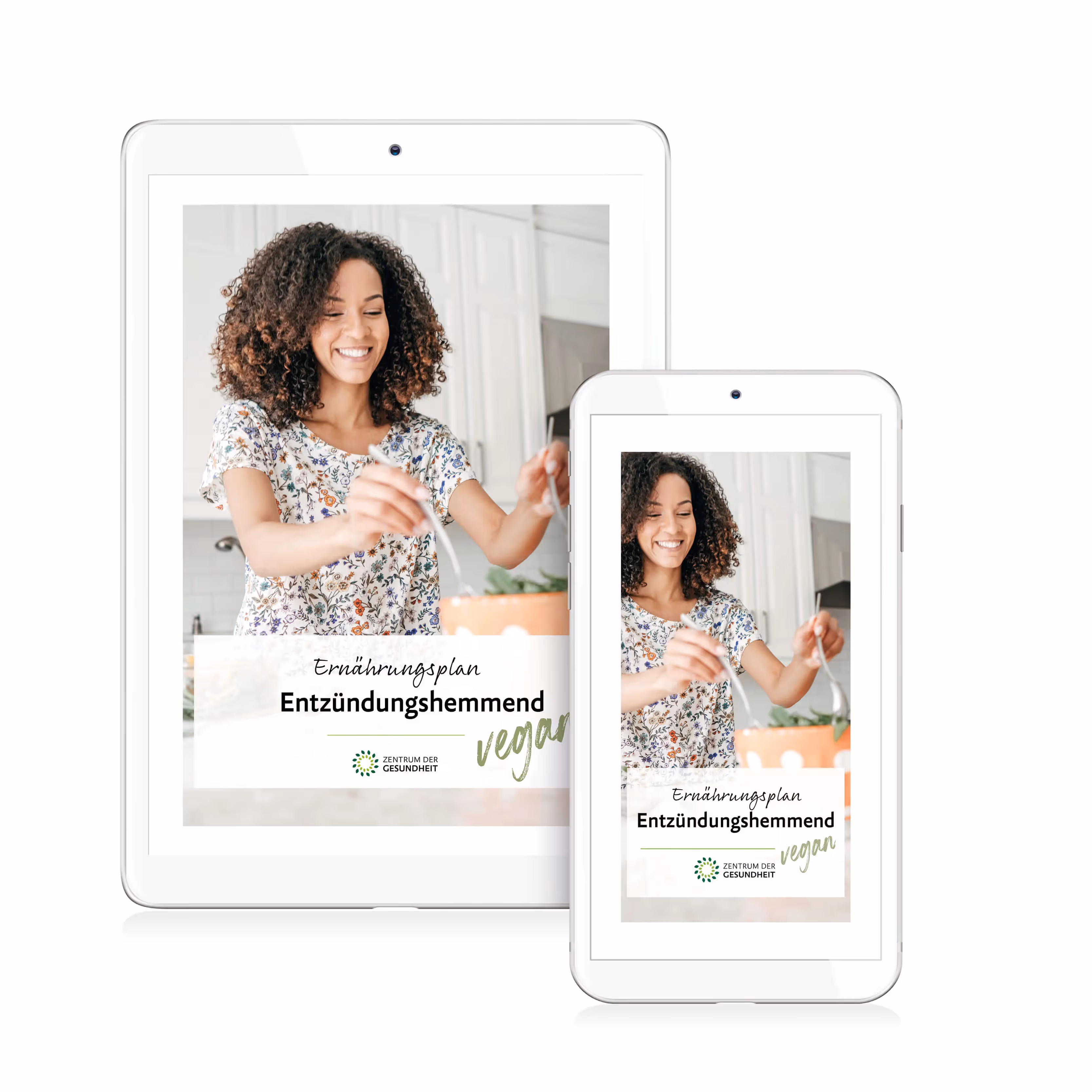 Sie möchten mit veganer Ernährung gezielt etwas für Ihre Gesundheit tun? Dann sind die Ernährungspläne vom Zentrum der Gesundheit die Antwort. Jeder Ernährungsplan ist für 7 Tage mit je drei Hauptmahlzeiten konzipiert und unterstützt zum Beispiel das Entgiften oder das Abnehmen. Weitere Ernährungspläne eignen sich bei bestimmten chronischen Erkrankungen wie Hashimoto, Bluthochdruck, Psoriasis, Rheuma oder Arthrose.