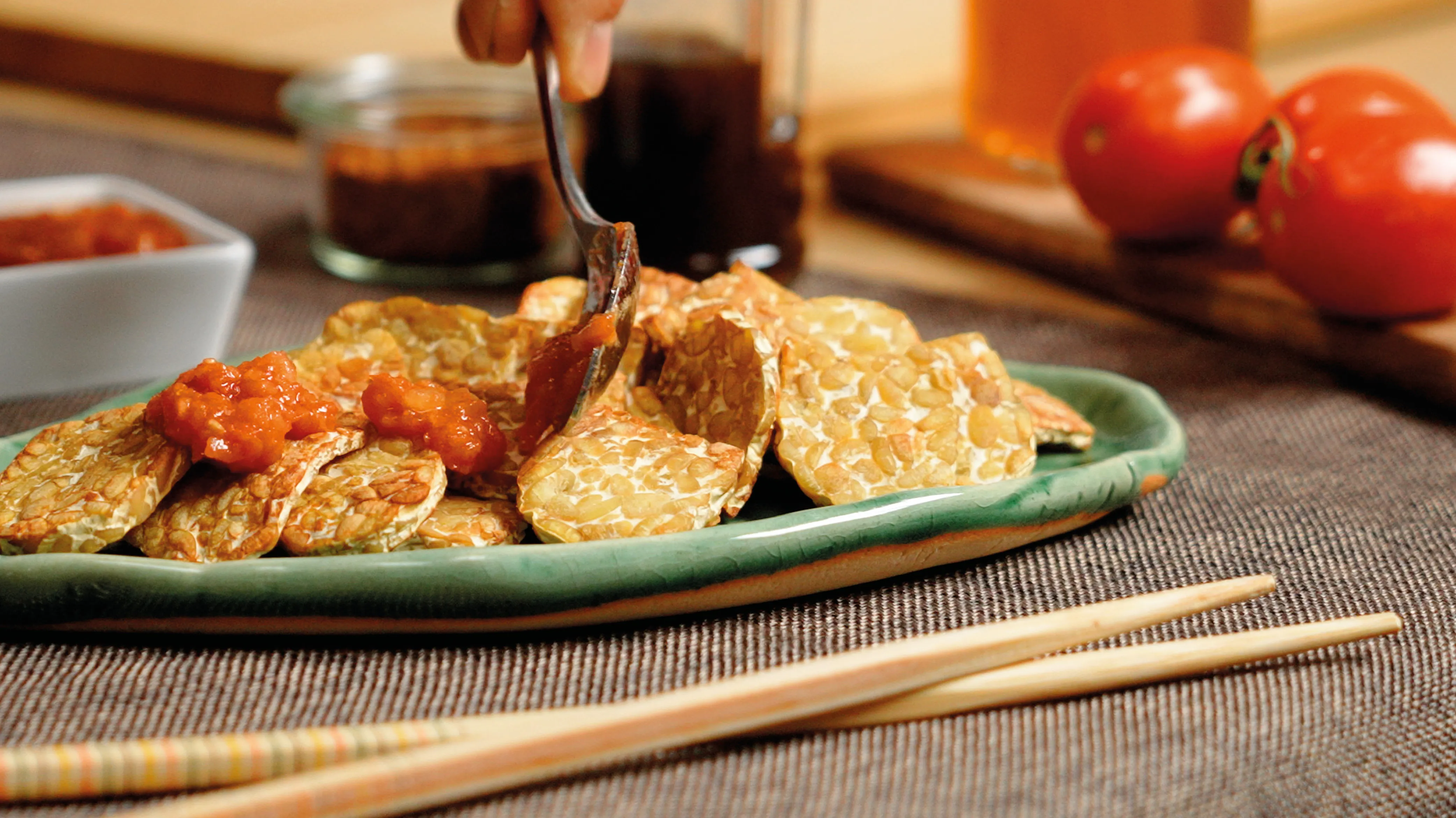 - Gerösteter Tempeh mit Tomaten