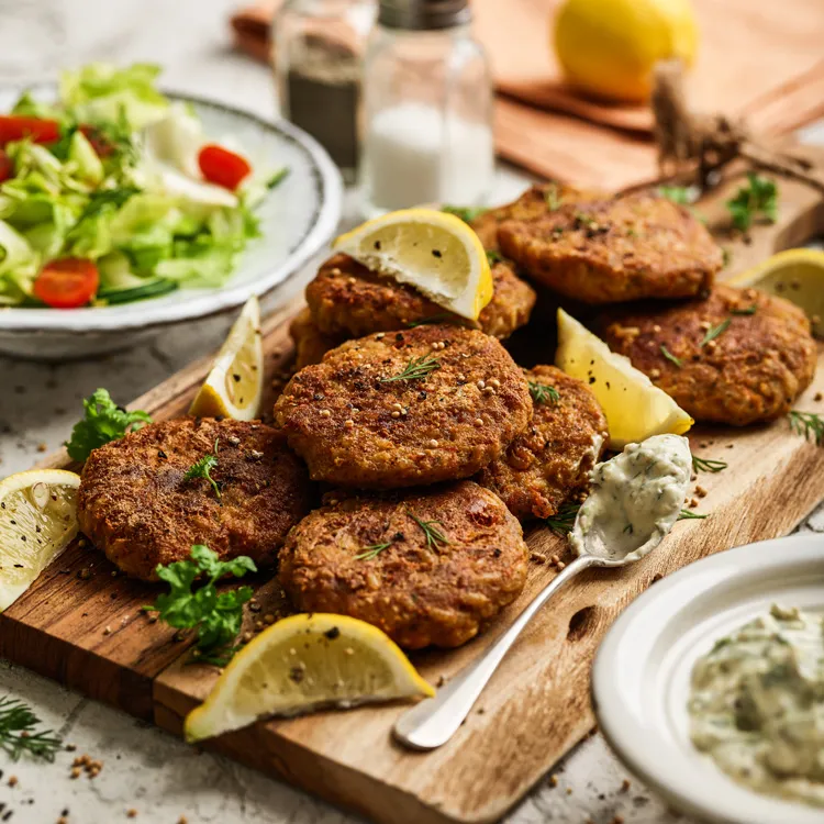 Nordsee-Frikadellen mit Dip und Endiviensalat 26